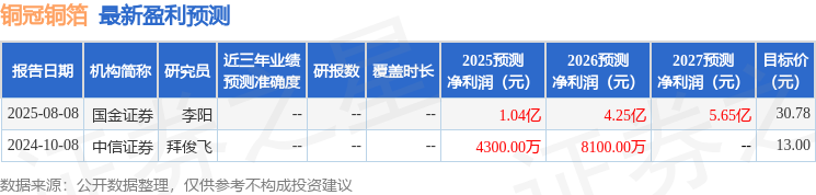 国金证券股份有限公司樊志远,李阳,邓小路,赵铭近期对铜冠铜箔进行研究并发布了研究报告《半年报点评:国产HVLP铜箔业绩超预期,利润释放元年》,给予铜冠铜箔买入评级。