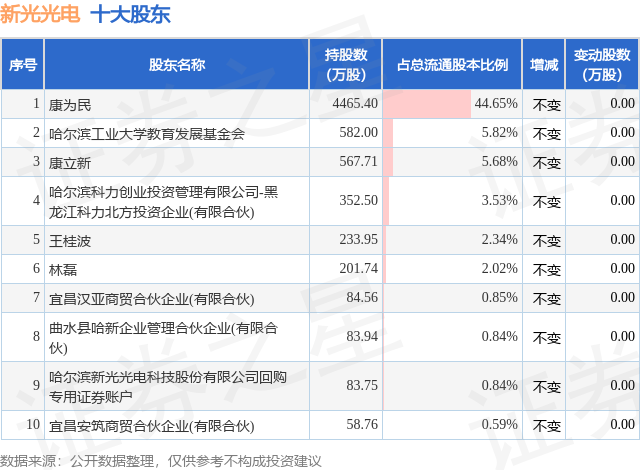 根据新光光电2025年一季报公布的十大股东详情如下: